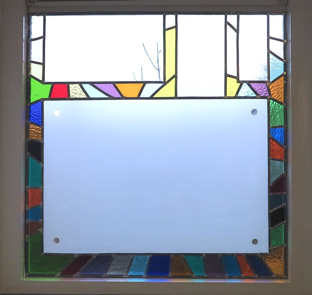 Zelfdragend (verwijderbaar) glas-in-lood paneel.