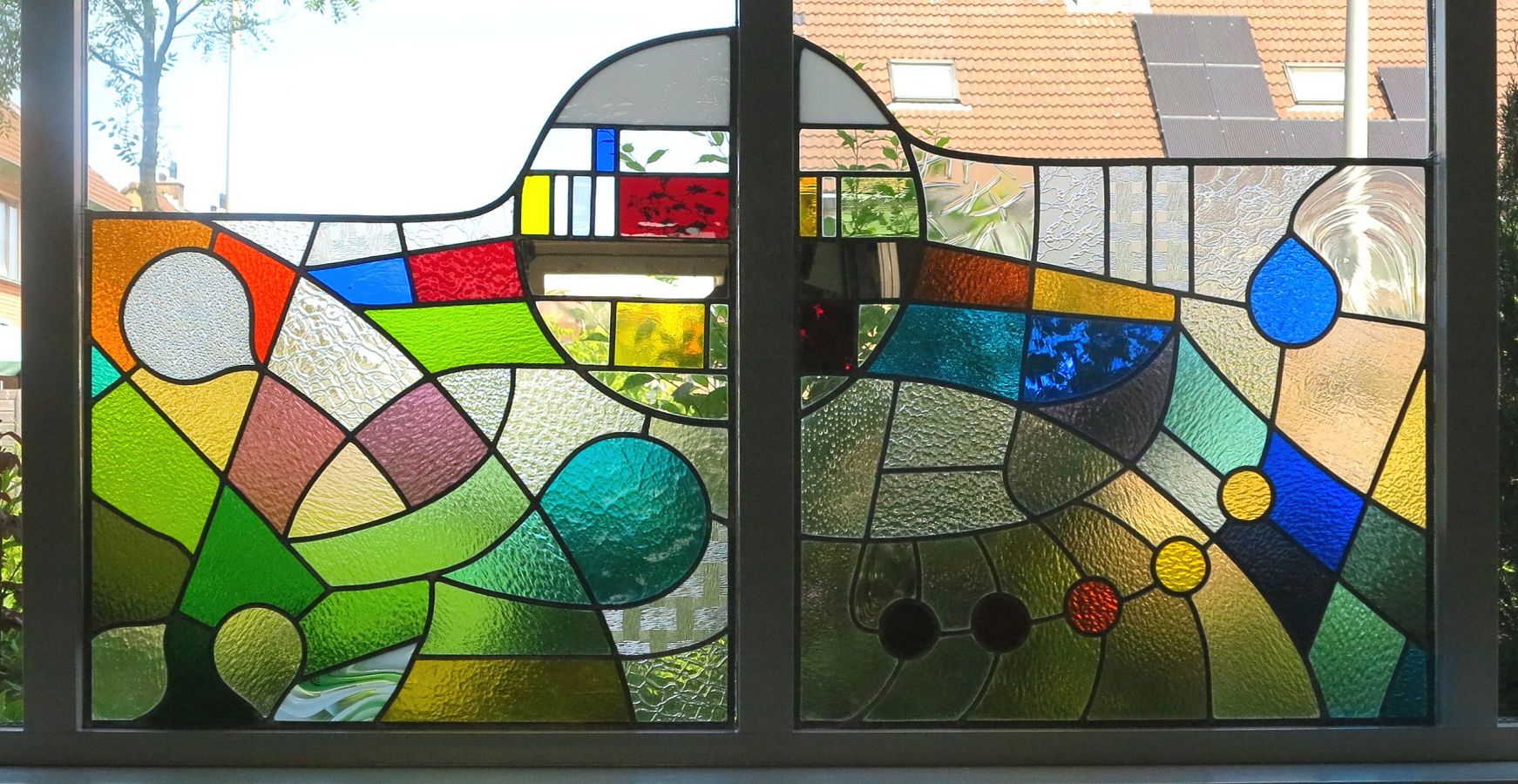 Materiaal: Kathedraalglas / spiegelglas / vlakglas / kleurloos figuurglas